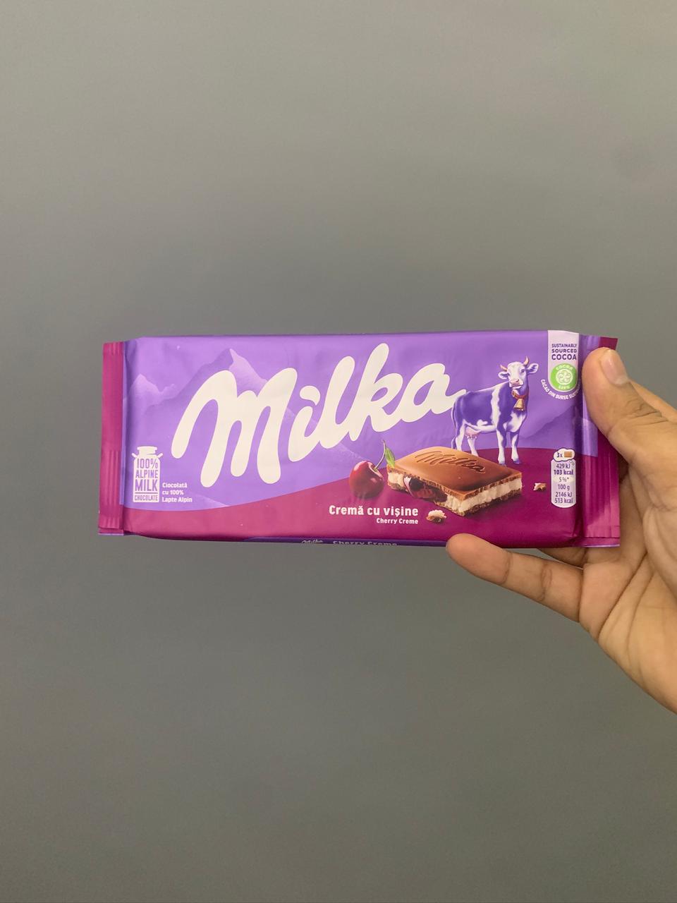 🍫 Milka Cherry Creme 100g – Cokelat Susu Lembut dengan Isian Krim Ceri yang Manis Segar